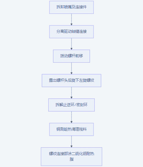 特別警示:螺桿頭螺紋多為左旋設(shè)計,反向旋轉(zhuǎn)易造成螺紋滑絲。某維修站數(shù)據(jù)顯示,30%的螺桿損傷源于錯誤旋向操作。